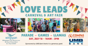 Join Us! Join Wingspan for a joyful summer celebration at our Love Leads Carnival & Art Fair, a special event that brings together creativity, music, community, and fun in support of people with developmental disabilities. This festive afternoon will feature Wingspan’s “Love Leads” client parade, live music, games, and special visits from therapy llamas. Guests…